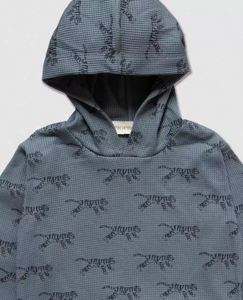 Buzo confeccionado en tejido panal 100% algodón, suave al tacto y con una delicada textura en relieve que recuerda a un panal de abeja.